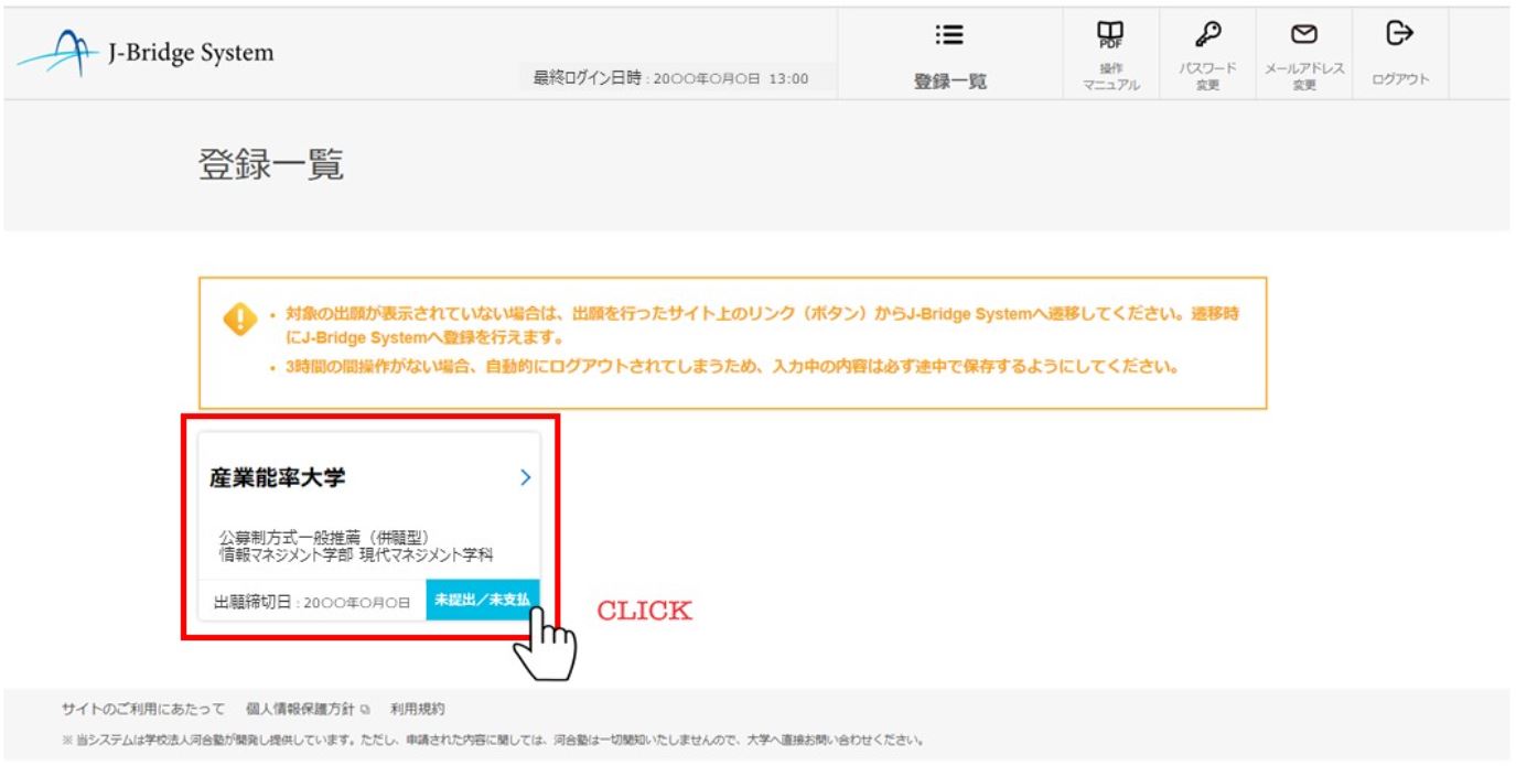 登録一覧画面上の公募制方式一般推薦(併願型)のバナーをクリックしてください。