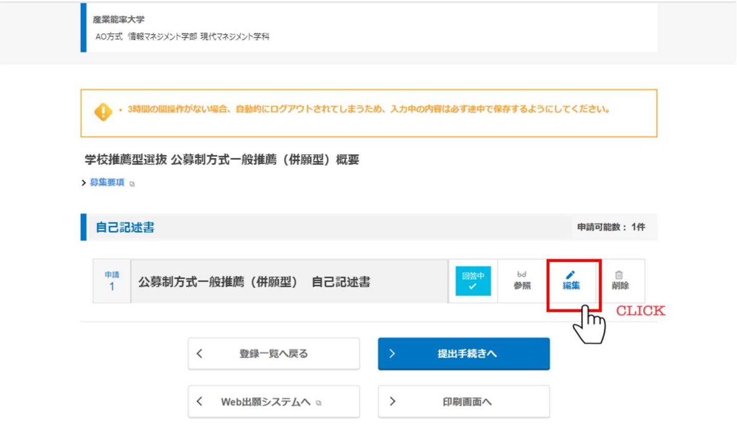 自己記述書が表示されますので、入力してください。入力が完了したら提出をしてください。