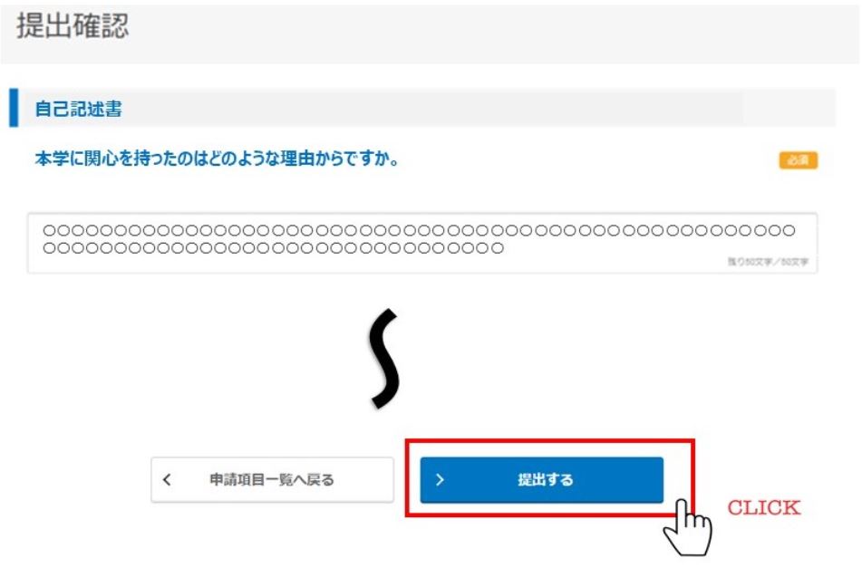 回答内容を確認し、「提出する」ボタンをクリックしてください。