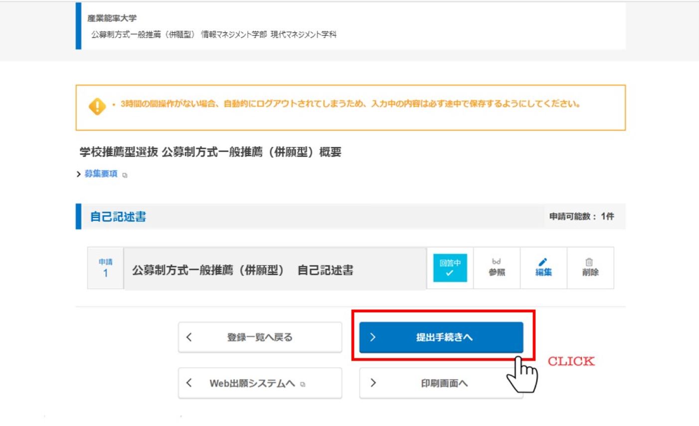 回答終了後、申請項目一覧の画面下の「提出手続きへ」ボタンをクリックしてください。
