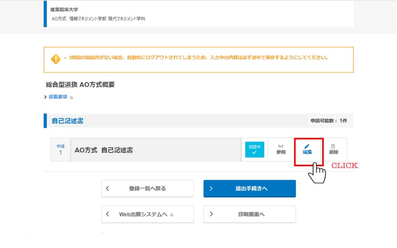 ※180分間、操作がない場合、自動的にログアウトされてしまうため、入力中の内容は必ず途中で保存するようにしてください。