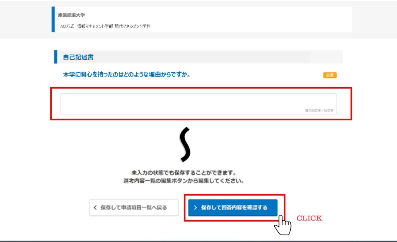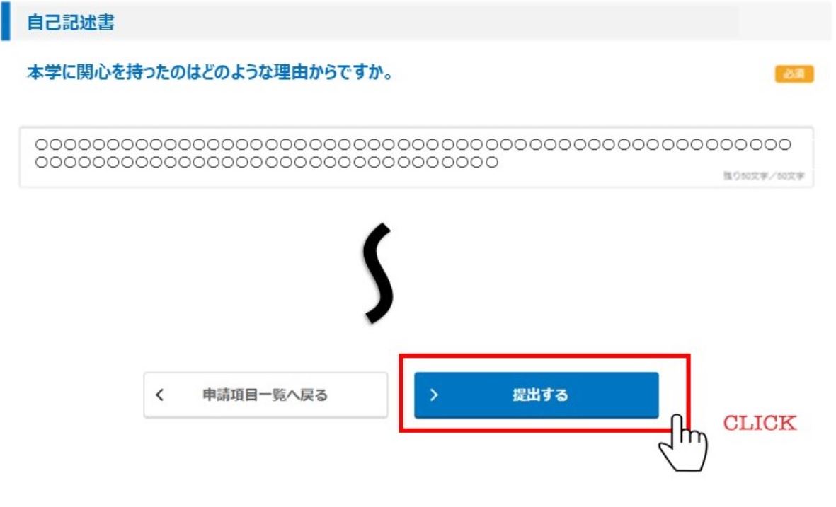 自己記述書が表示されますので、入力してください。入力が完了したら提出をしてください。