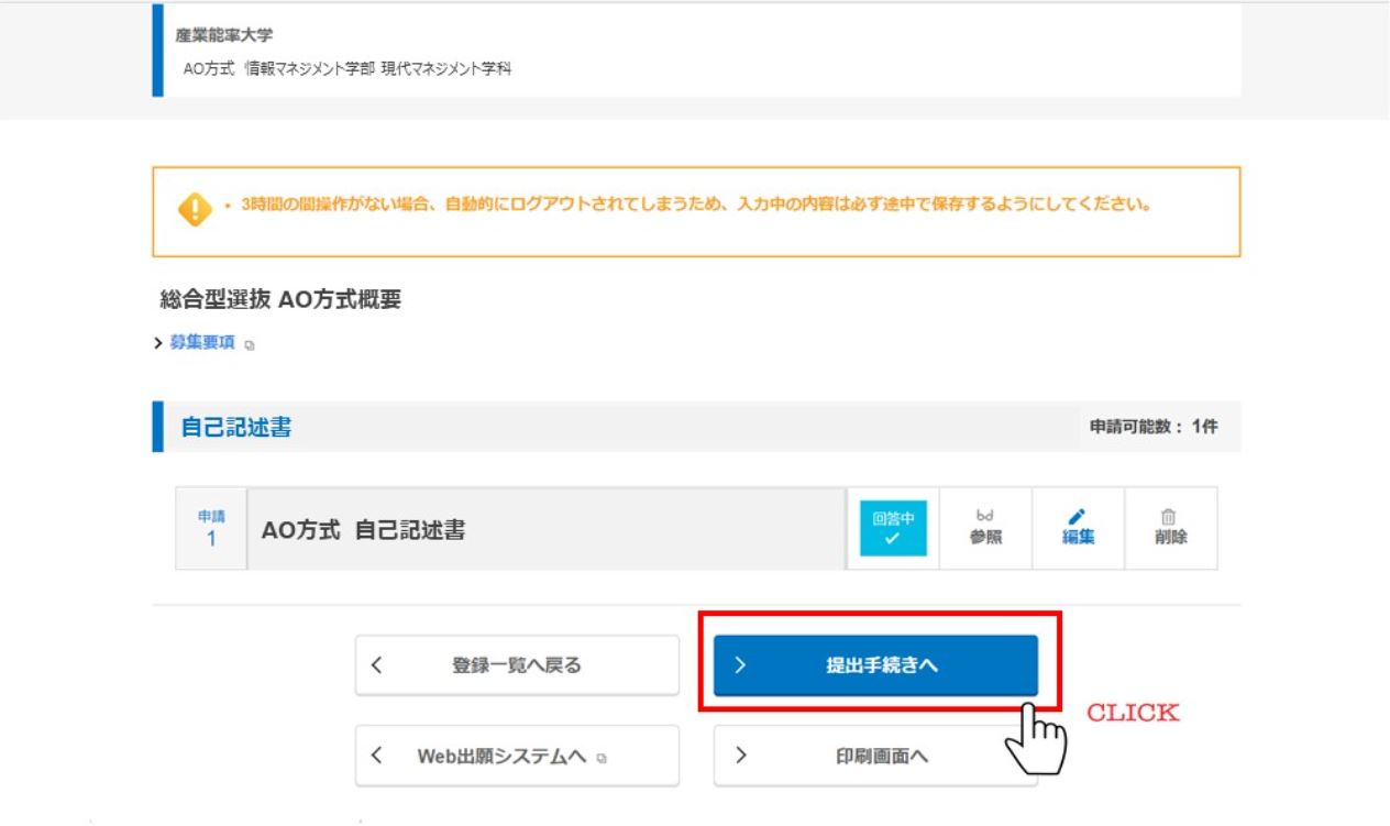 回答終了後、申請項目一覧の画面下の「提出手続きへ」ボタンをクリックしてください。