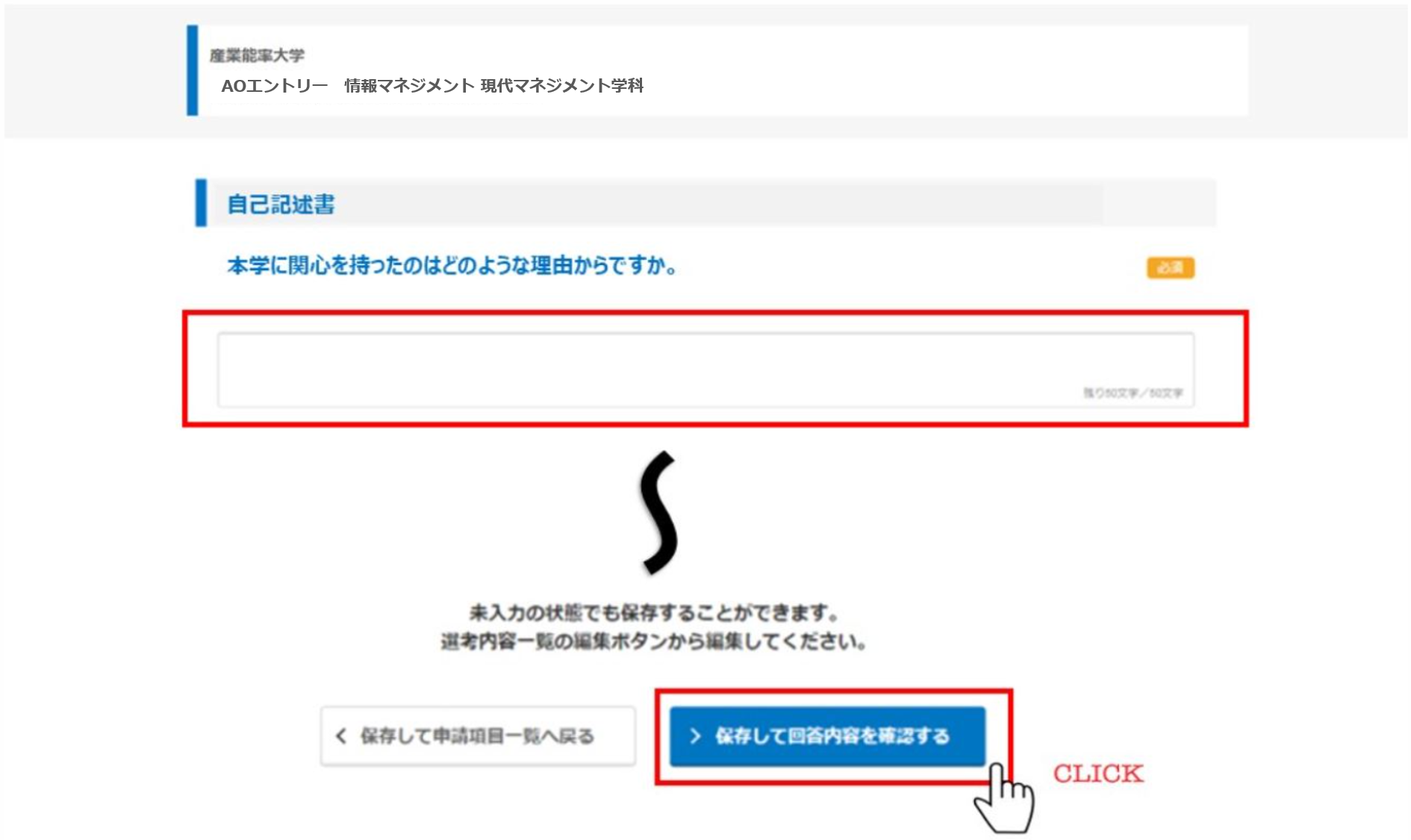 ※仮保存機能でエントリーシート提出期間中であれば何度でも修正が可能です。ただし、提出ボタンをクリック後は修正ができませんのでご注意ください。