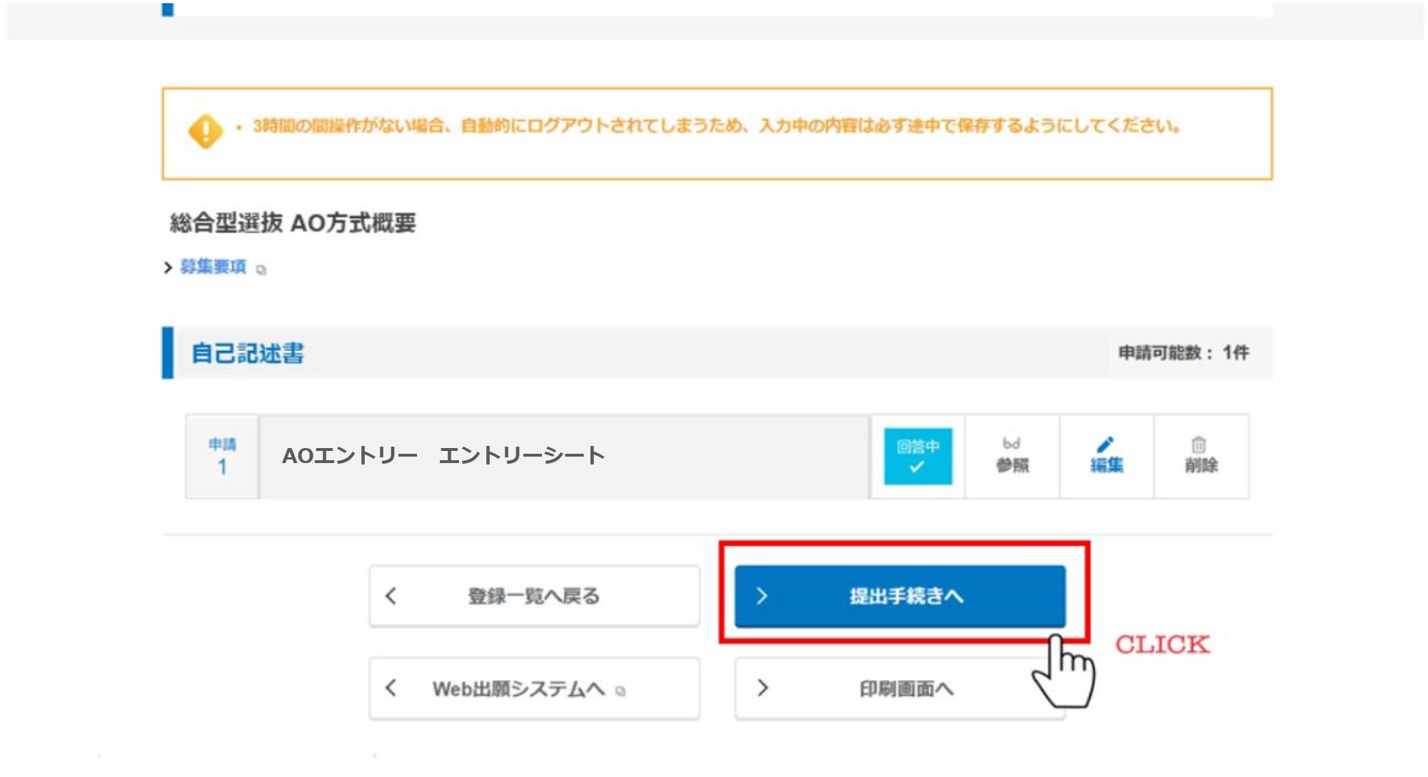 回答終了後、申請項目一覧の画面下の「提出手続きへ」ボタンをクリックしてください。