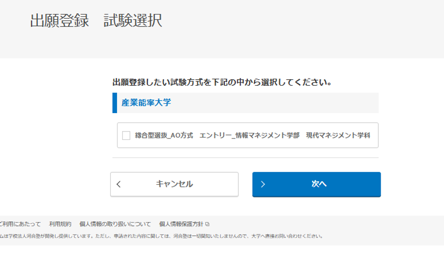 登録一覧画面上のAOエントリーのバナーをクリックしてください。