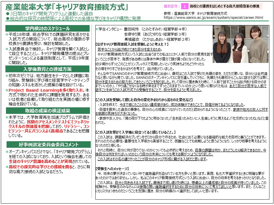 「キャリア教育接続方式」合格者の声