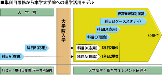 単科目履修は、産業能率大学大学院総合マネジメント研究科のカリキュラムの中から、科目単位の受講を可能にした履修形態です。
