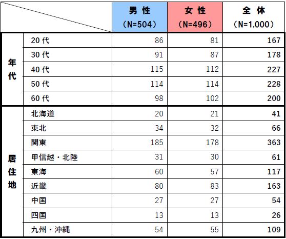 調査対象:20歳から69歳までの男女1,000人(地域・性年代構成比は、総務省統計局最新人口推計に準拠)