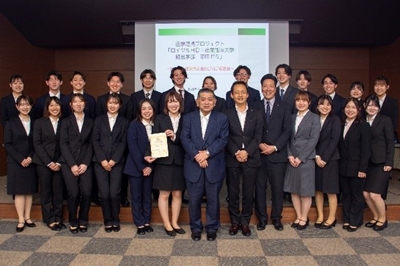 産業能率大学(東京都世田谷区、以下本学)経営学部 漆田 隆司ゼミはロイヤルホールディングス株式会社(本社:福岡県福岡市、代表取締役社長:阿部 正孝、以下「ロイヤルHD」)執行役員 イノベーション推進担当の生田 直己と漆田ゼミ生4期生全員(23名)、担当教員の経営学部教授 漆田 隆司を交えて、これまでのロイヤルHDとの取り組みを総括する産学連携プロジェクトの成果発表会を行いました。