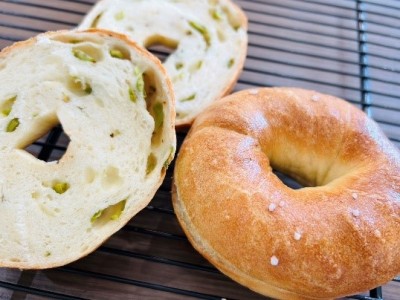 学生がベーグル店と協働して企画した 「オリーブベーグル」
