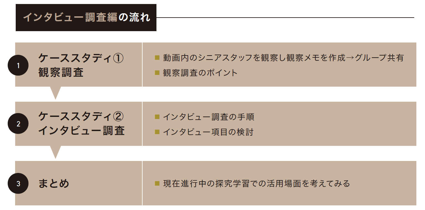 行動観察、インタビュー調査、アンケート調査により仮説形成・検証のプロセスを体験する