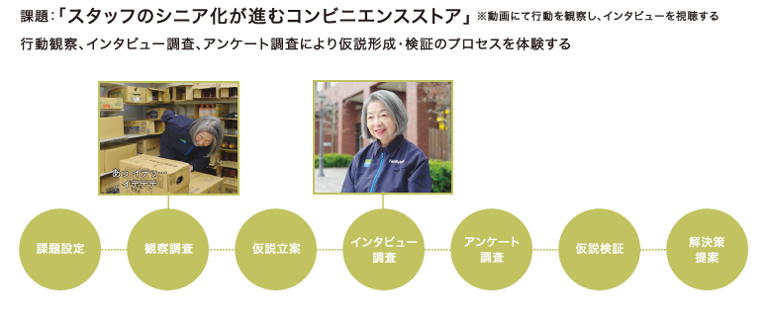 課題:「スタッフのシニア化が進むコンビニエンスストア」※動画にて行動を観察し、インタビューを視聴する