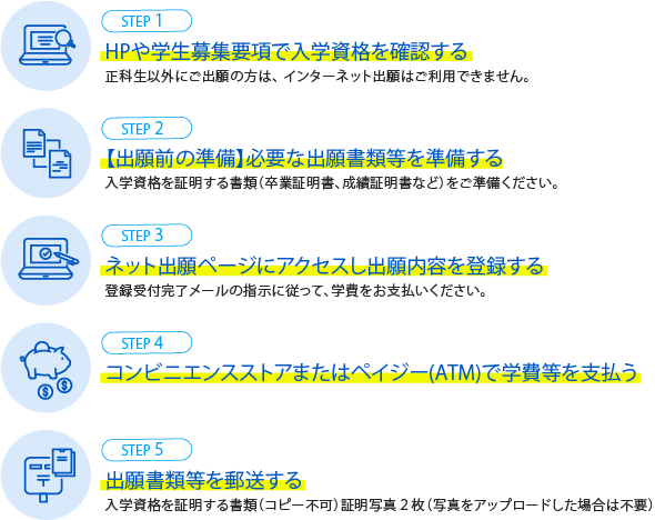 注:正科生以外に出願を希望される方は、インターネット出願を利用できません。