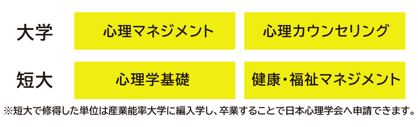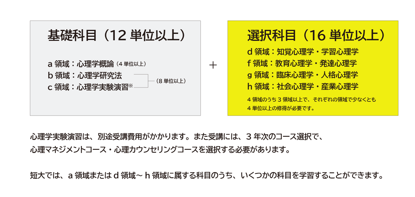 短大の7つのコースで心理学検定試験に対応した科目を配本