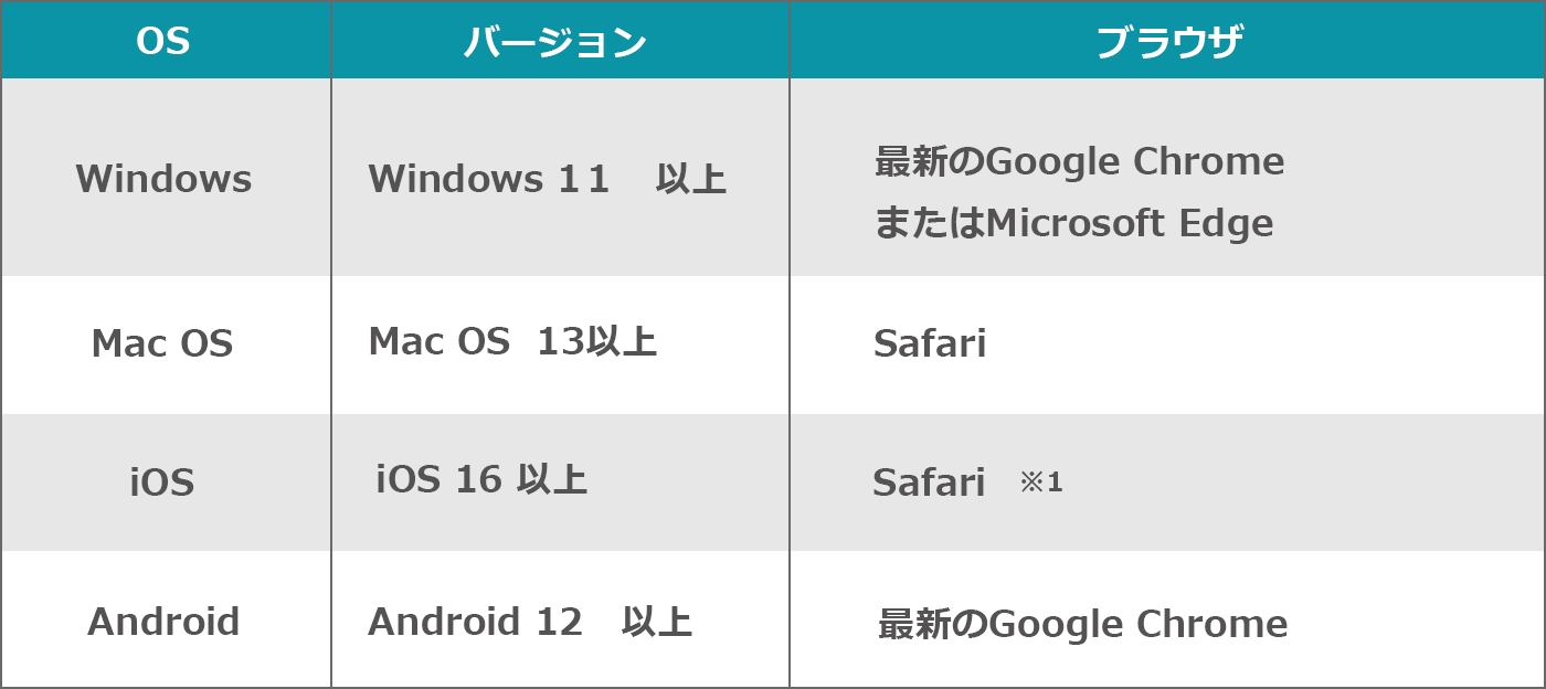 ・表の要件を満たさない機器の一例として「Chromebook(ChromeOS)」が該当しますので、ご注意ください。