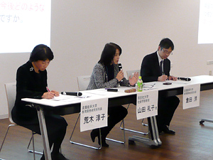 つづいて、参加者が小グループに分かれて、基調講演および本学の取り組みに関する報告内容を踏まえて「学習成果の可視化データを大学教育の質向上に結びつけるために、大学には今後どのような取り組みが求められるか」についてディスカッションを行いました。ディスカッションの中では、各大学の学習成果の可視化を目的とした取り組みの紹介やIR調査の実施に関する情報交換なども行われました。