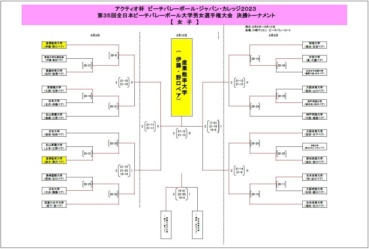 神奈川県川崎市で8月8日~10日に開催された「アクティオ杯 ビーチバレーボール・ジャパン・カレッジ2023/全日本ビーチバレーボール大学男女選手権大会」に、産業能率大学から2チームが出場しました。