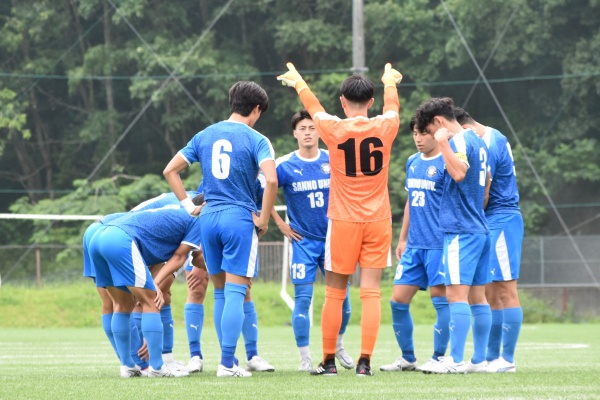 産業能率大学は順天堂大学と対戦しました。序盤から攻守が目まぐるしく入れ替わる展開となります。産業能率大学は前半34分にはフリーキックの好機を得るも、惜しくもシュートは枠を外れ前半を0-0で折り返します。