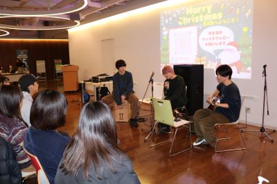 クリスマスイベントでは、学生団体による模擬店出店、GSS(バンドサークル)や吹奏楽部によるクリスマス演奏会、ビンゴ大会に加えて、タリーズコーヒー様によるハンドドリップ体験など、数多くの企画が催され大きな盛り上がりを見せました。