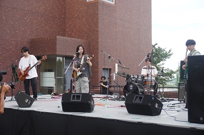 中庭ステージでは音楽同好会の演奏、SDCによるダンスパフォーマンスや抽選会QUINGOが行われ、射的コーナーでは弾けるコルクの音、模擬店では販売する学生たちの楽しそうな声が空に響きわたりました。