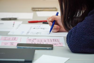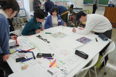 新入生は、課題について徹底的に考え抜き、グループで協力し合いながらアイデアを形にまとめていきました。
