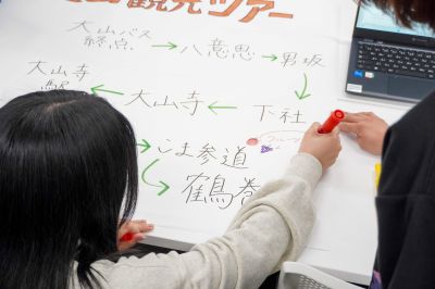 情報マネジメント学部では、「訪れた観光客が帰りに伊勢原駅周辺のお店で購入したくなるお土産やご当地メニューを考えてみよう!」をテーマに、湘南キャンパス付近の観光名所でもある「日本遺産・大山」のプロモーションについてグループディスカッションし、プレゼンテーションを行いました。