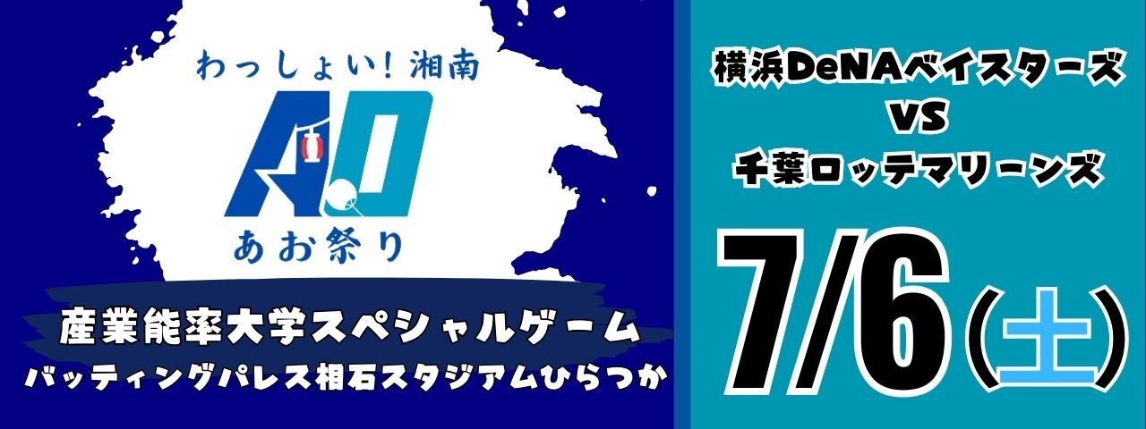 2024年7月6日(土)バッティングパレス相石スタジアムひらつか(平塚球場)で開催される、イースタン・リーグ公式戦 千葉ロッテマリーンズ戦では、産業能率大学スペシャルゲーム2024『わっしょい! 湘南 あお祭り』を開催いたします。