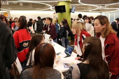 今年度は2部構成で開催され、1部は各団体が501教室で趣向を凝らしたアピールを行い、2部では各ブースや教室で、お揃いのユニフォームや展示など工夫を凝らしての勧誘を行いました。