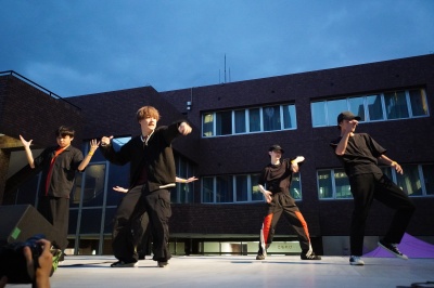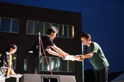 当日は準備中の激しい降雨で、一時開催自体も危ぶまれましたが、懸命にステージをモップがけし、開催を願う学生達の思いが天に通じたのか、無事に開催することができました。