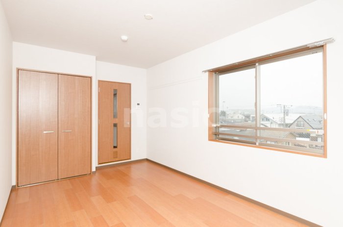 木目調フローリングでクローゼットのある室内