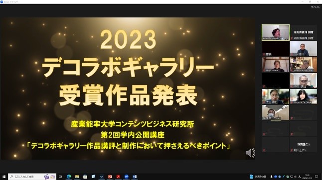 今回は「デコラボギャラリー作品講評と制作において押さえるべきポイント」をテーマに、コンテンツビジネス研究所客員研究員と産業能率大学教員(研究所研究員)によるZoomを使ったオンライン形式で進められました。