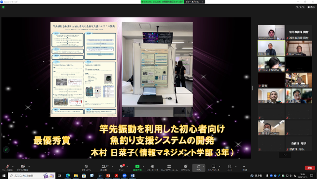 今年度は39作品の応募がありました(動画部門:3作品、静止画部門:25作品、Webコンテンツ部門:2作品、ゲーム部門:2作品、電子出版部門:1作品、音楽部門:1作品、先進的表現部門:4作品、キャラクター部門:1作品)。その中から、客員研究員4名と担当教員4名による審査の結果、最優秀賞(1作品)、部門賞(静止画部門2作品・動画・Webコンテンツ・ゲーム・電子出版・音楽・先進的表現・キャラクターの各部門1作品)、デコラボ賞(2名)が選出されました。