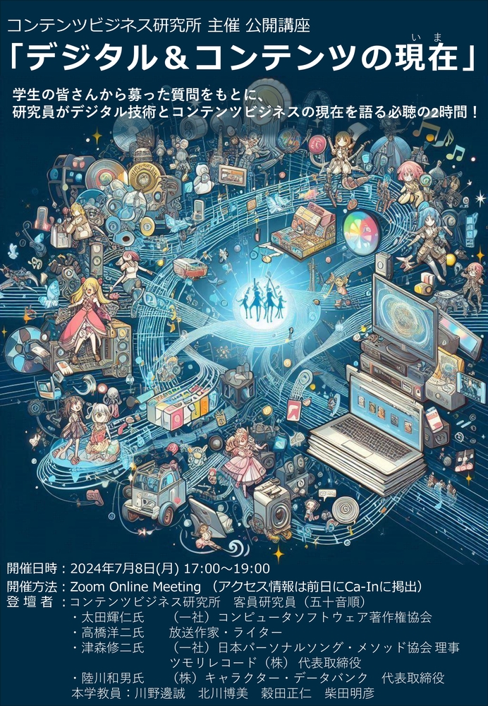2024.06.14コンテンツビジネス研究所主催「2024年度湘南キャンパスにおける第1回学内公開講座」開催のご案内