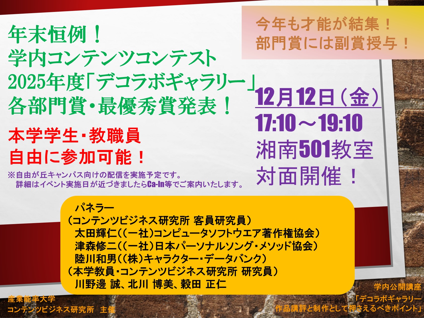 2025.11.28コンテンツビジネス研究所主催「2025年度湘南キャンパスにおける第2回学内公開講座」開催のご案内
