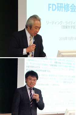 学内の教員を対象にFD研修会を開催し、教授法に関する内容の修得のみにならず、学内の各部署と学生教育上必要な情報共有の場となっています。2016年度は、アクティブ・ラーニングを中心に、研修を実施しています。