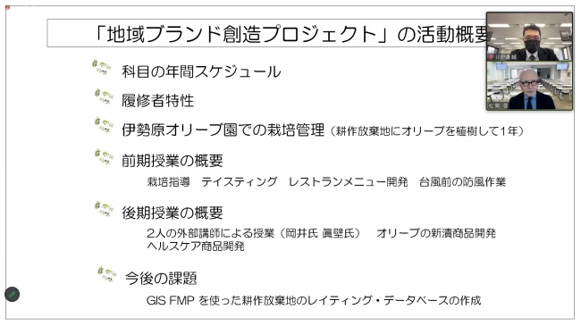現代マネジメント学科では、地域に密着したプロジェクトの活動概要と学生の実際の取組み状況、および今後の課題が報告されました。
