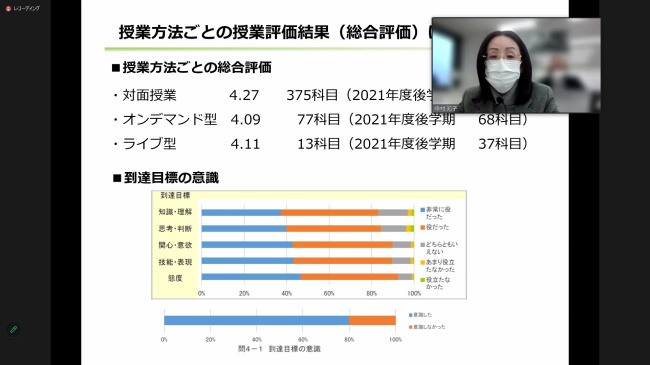 最後に授業評価制度と2022年度授業評価結果の考察の報告が行われました。