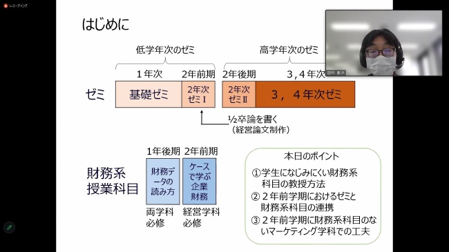 参加者からのアンケートは概ね好評であり、今回報告した財務系科目や地域連携科目の授業改善に関して、建設的なご意見もいただきました。心から感謝申し上げます。