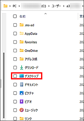 a32xxxxxのユーザーのデスクトップにあるファイルを表示する手順