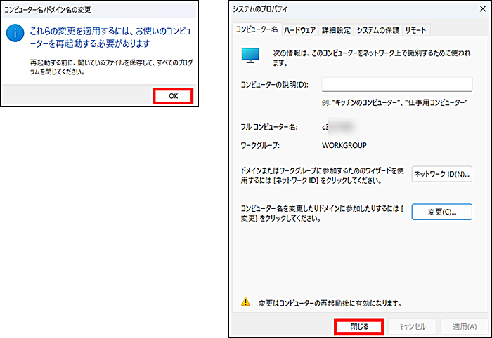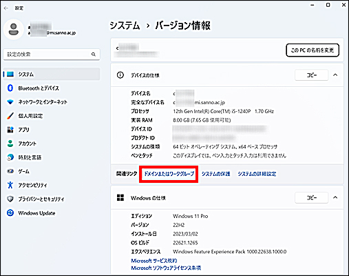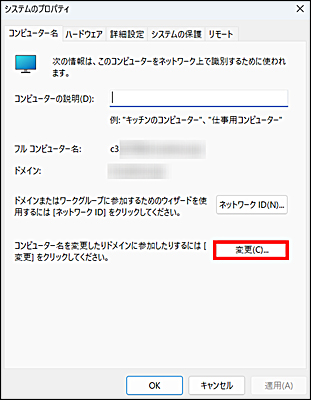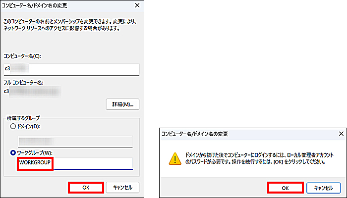 注意:ワークグループへの切り替えを行うと、学生番号ユーザー(a32xxxxx)でのログオンは出来なくなります。