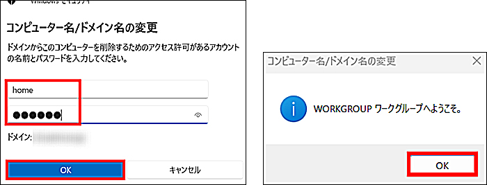 本手順を参考にワークグループへの切り替えを実施し、自宅用ユーザーアカウントを作成してください。