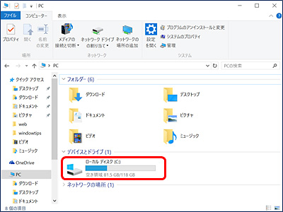 3.【ローカルディスク(C:)】をダブルクリック
