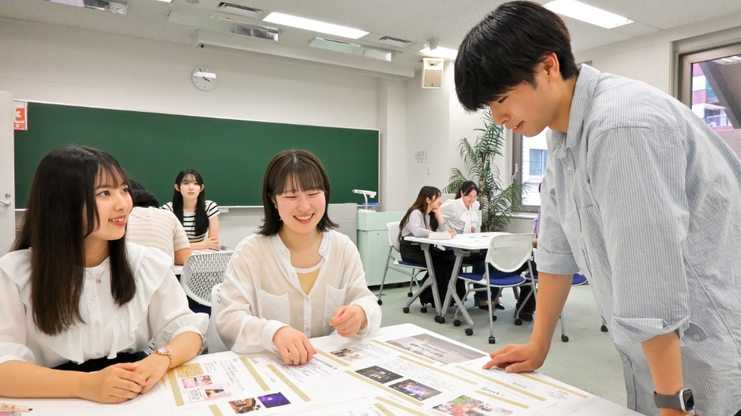 アクティブラーニングとは、学生が主体的に活動し、学ぶスタイルのことをいいます。教員の講義を聞くだけではなく、チームで話し合ったり、他者の意見を聞き、まとめ、表現したりすることで、知識や理論を効率的に修得し、その活用力も身につけていきます。