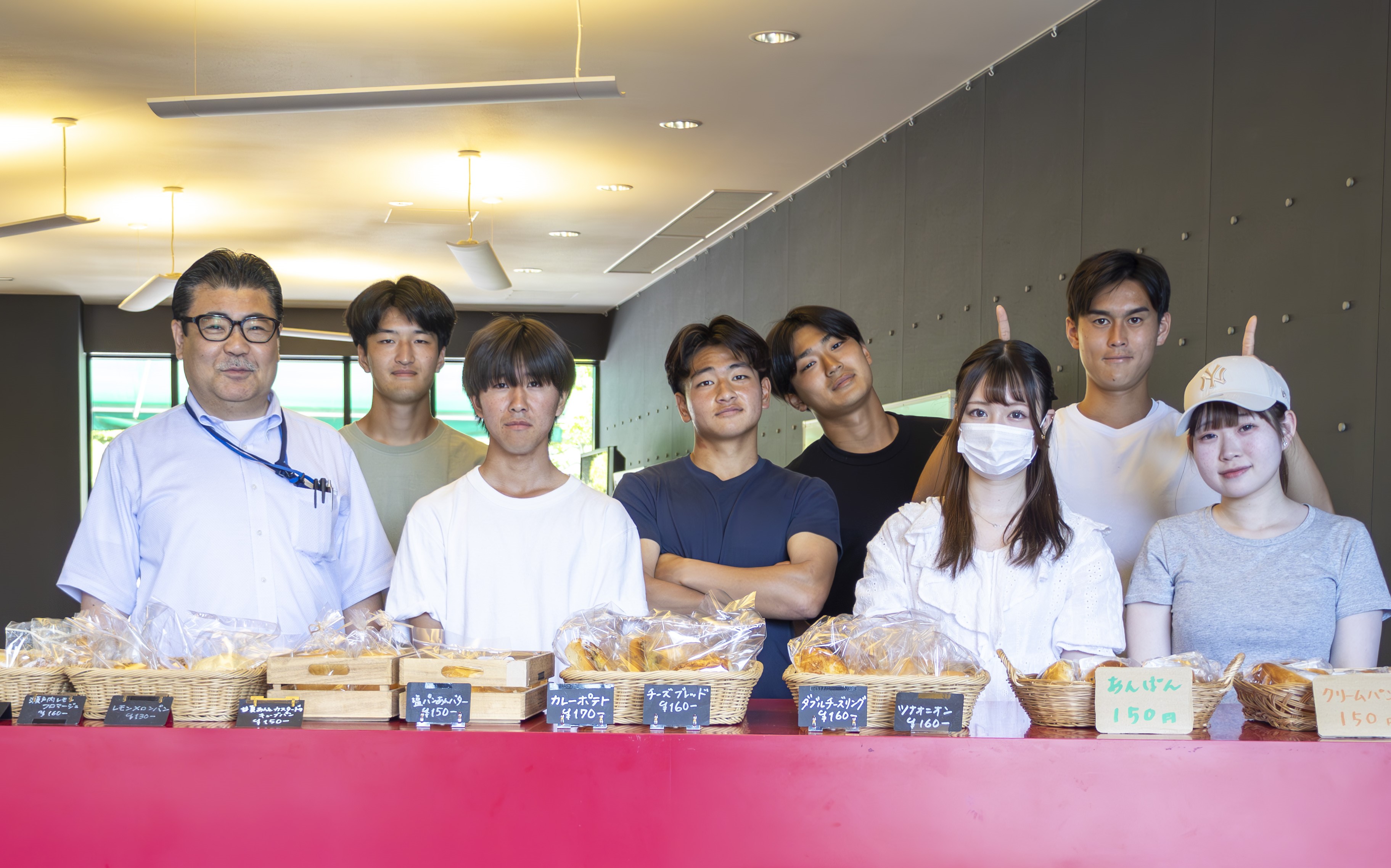 情報マネジメント学部兵頭良純准教授のゼミでは、有志の学生たちが、社会福祉法人おおいそ福祉会が製造したパンの販売を支援しています。この活動は、本学と大磯町、大磯町福祉作業所等連絡会および湘南農業協同組合の4者間で 締結された「産品の利活用に向けた連携と協力に関する協定書」にもとづく農福学館連携事業の一環として、障がい者の社会参画の拡充やパンの販売場所の提供による地域貢献を目的に実施されています。2025年6月18日に行われた販売会では、 兵頭ゼミの有志の学生7人が参加。湘南キャンパスでの販売活動に取り組みました。兵頭ゼミでは今後もさまざまな地域イベントやプロジェクトに参加し、地域社会発展に貢献していきます。