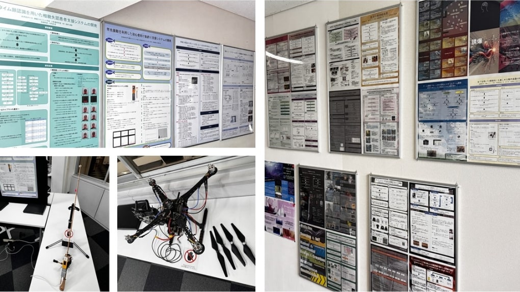 大学の基本的な役割の一つである学術研究への取り組みを重視します。研究テーマは、⼈や社会のニーズに応える内容であれば、情報学を基軸に分野を問わず学際的に設定することが可能です。AIやIoT、ドローンを活用したシステム開発や、福祉的な支援システムの開発、メディアデザインやコンピュータのエンターテインメント利用に関する研究・制作など、多種多様なテーマに取り組んでいます。