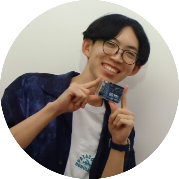 川野邊ゼミの魅力は、互いの研究テーマについて活発に議論し合える点です。研究や活動で悩んだ際は、ゼミ生同士で話し合い、解決の糸口を見つけることで、モチベーションの向上につながりました。また、苦手だった議論は、他者の意見から刺激を受けることで、今では論理的に考え、自信を持って発言できるようになりました。私は現在、「遠隔操作による感覚の共有」について研究しています。今後はこれを具体化するため、電子工作やデータの活用を通じて、人とデジタルの境界を越えた新しいインタラクションの実現を目指していきたいです。