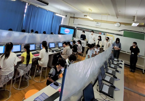 7月10日(土)にはオンラインワークショップを開催、7月15日(木)には伊勢原市立高部屋小学校にて、3年生2クラスの総合的な学習の時間でScratchプログラミングの体験授業を行いました。
