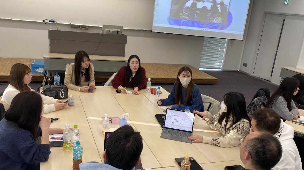 様々な業種の企業が参加する月1回の勉強会に参加します。企業の課題や進捗を共有し、グループディスカッションを通じて多角的な視点から解決策を考えます。コンサルタントや講師からのフィードバックも受けられる貴重な機会です。社会人との交流を通じて、ビジネスの現場感覚も養うことができ、知らない業界の魅力を知ることもできます。