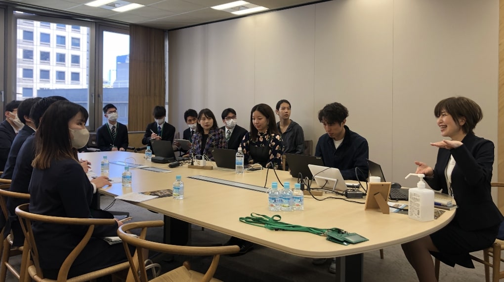 私は、幸福度が高いといわれている北欧諸国の人はどんな環境にいるのか興味を持ち、野間ゼミを選びました。また、幸福心理学を学ぶことで自分のネガティブ思考を改善し、ポジティブ思考に変え、周囲の人の幸福度も高められる存在になりたいと思いました。ゼミの活動では、社員の幸福度が高い企業を訪問し、実際の職場環境や工夫について直接質問する機会がありました。現場の声を聞けたことは、ポジティブ思考へ変化するきっかけとなり、働く自分の姿を重ね就職活動に向けた具体的な目標を持つ貴重な経験となりました。
